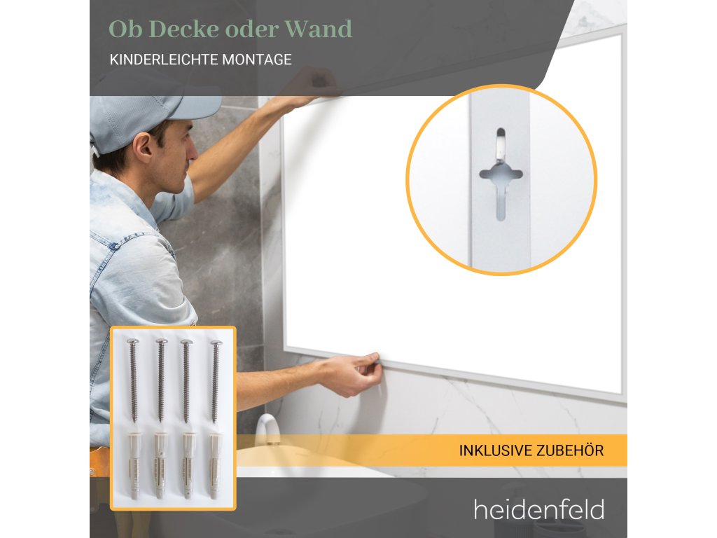 A Heidenfeld HP-110 infravörös fűtőberendezéssel egy különösen elegáns fűtőberendezést kap. Meggyőzően modern dizájnvázzal rendelkezik, amely a legmagasabb szintű eleganciát és stabilitást képviseli. Alumíniumból készült, és egyszerű és klasszikus eleganciájával lenyűgöz. A fehér fűtőfelület kellemesen diszkrét a világos falakon vagy mennyezeteken. Másrészt vonzó hangsúlyokat teremt a színes felületeken. Ez azt jelenti, hogy a Heidenfeld infravörös fűtőberendezés bármilyen belső térbe illeszkedik.