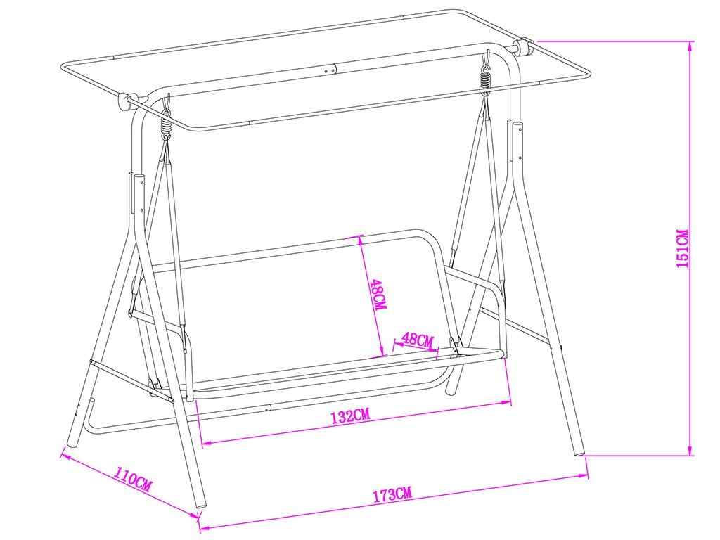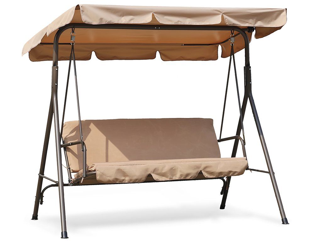 A csomag tartalmaz egy komplett kerti hintát tetővel és ülőfelülettel.