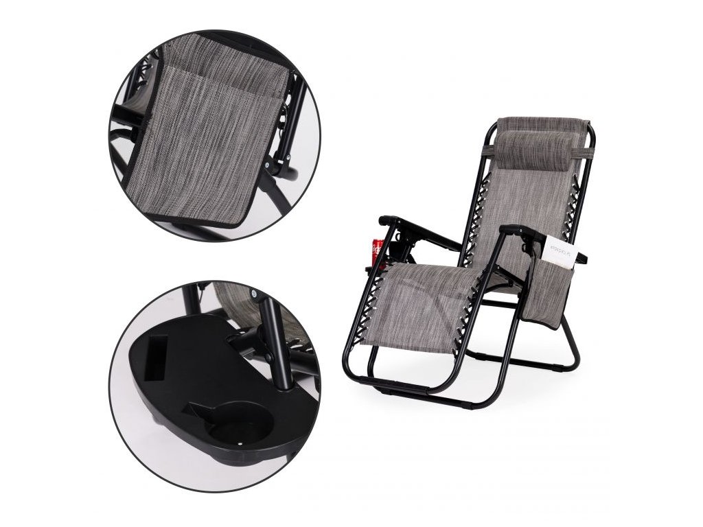 A napozóágy speciális felépítésének köszönhetően, lehetővé teszi az ágy fekvő helyzetének beállítását. Vízálló és vízáteresztő anyagból készült. A nyugágy oldalsó része táskával és pohártartóval van ellátva. A kényelmes fejtámla biztosítja a kényelmes pihenést, összecsukható szerkezetének köszönhetően bárhová szállítható.