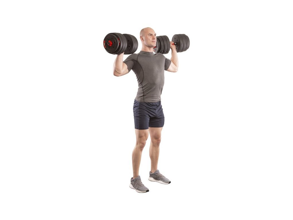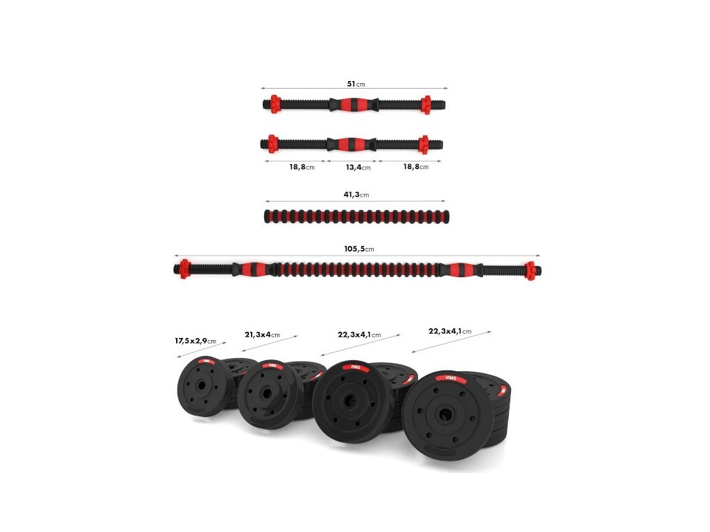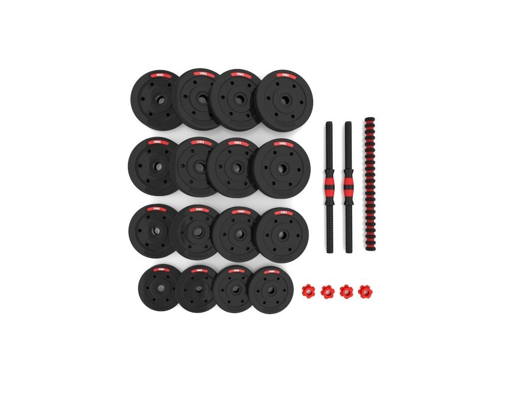 Két egykezes és egy kétkezes súlyzóból álló komplett szett, 40 kilogramm össztömeggel, ez a HMS SGP40. A rakodó súlyzó minden otthoni tornaterem klasszikus felszereléséhez tartozik.
