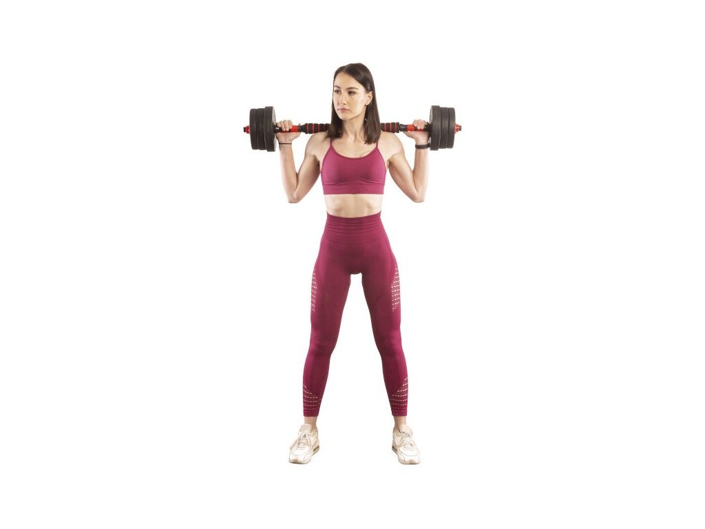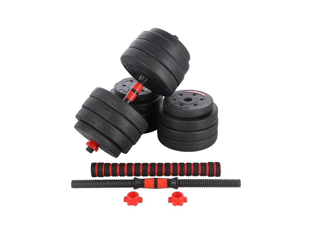 A tárcsák kemény műanyagból készültek, amelyet cementtel töltöttek. A kétkezes tengely egy összekötő rész, amelybe az egykezes súlyzók tengelyei csavarandók be. A rakadótüske menetes, és a súlyokat csillag anyákkal rögzítik.
