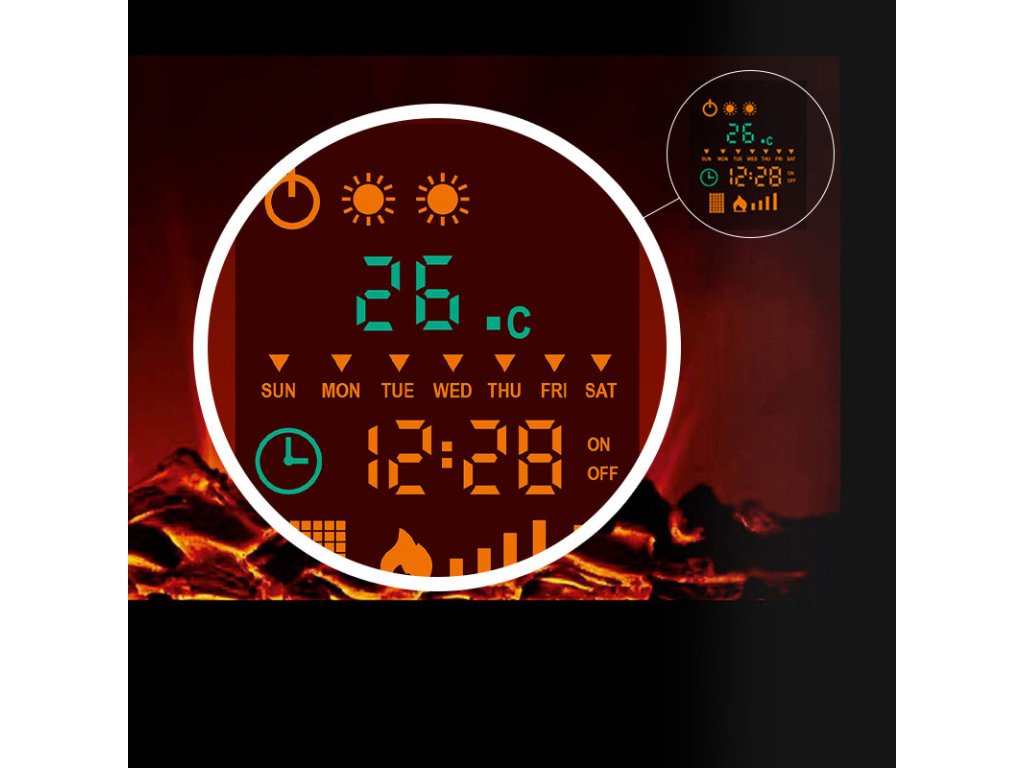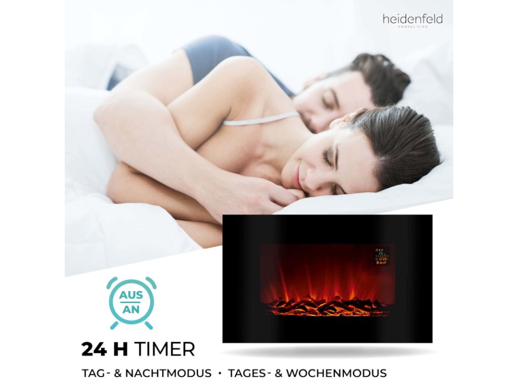 Állítsa be kényelmesen a kívánt hőmérsékletet egy adott kereten belül a beépített szobatermosztát segítségével. A Heidenfeld HF-WK100 elektromos kandallóba is beépített hőmérséklet-érzékelő rögzíti a helyiség hőmérsékletét, és biztosítja, hogy a fali kandalló mindig a kívánt szobahőmérsékletet tartsa. A szobahőfok-szabályzóval meghatározott fűtési időket is be lehet programozni. Így nyugodtan alhat, és élvezheti a kényelmes meleget, amikor reggel felkel az ágyból.