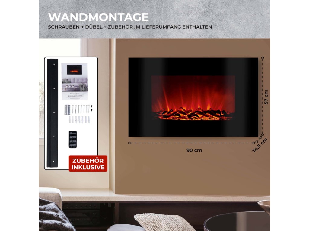 A Heidenfeld HF-WK100 elektromos kandallóhoz minden csavart, tiplit és rögzítőelemet megkap, hogy a készüléket gyorsan és egyszerűen a falhoz rögzíthesse. Csak egy kis biztonságos távolságra van szükség más tárgyaktól, például bútoroktól és függönyöktől. Ezért a fali kandallót rugalmasan elhelyezheti a helyiségben, és optimálisan integrálhatja a lakótér kialakításába.