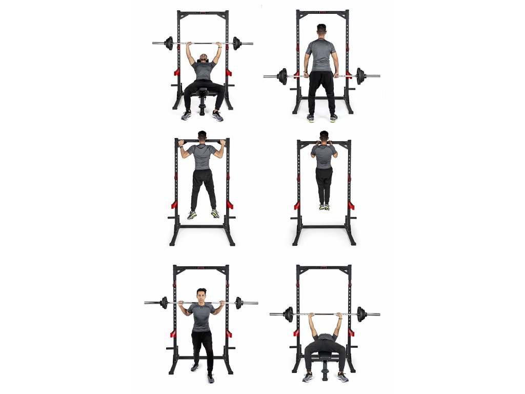 - az alap szélessége - a kampók távolsága 116 cm, alkalmas olimpiai súlyzóhoz