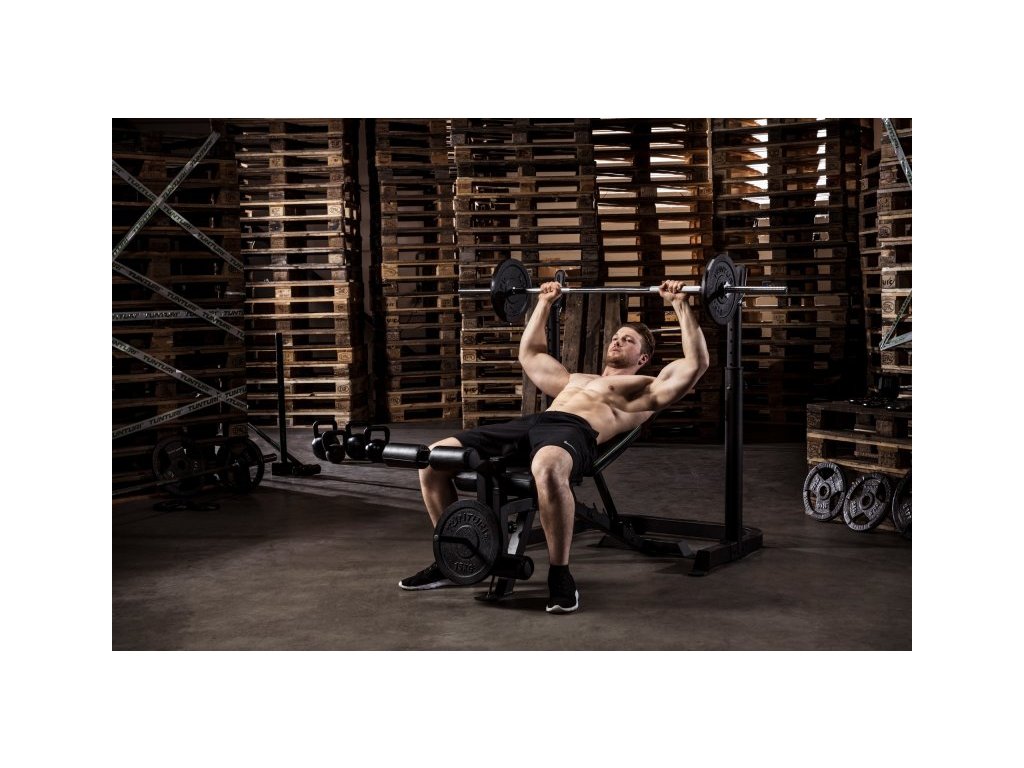 - Párnázott, állítható magasságú bicepsztámasz, együtt a curl rúddal