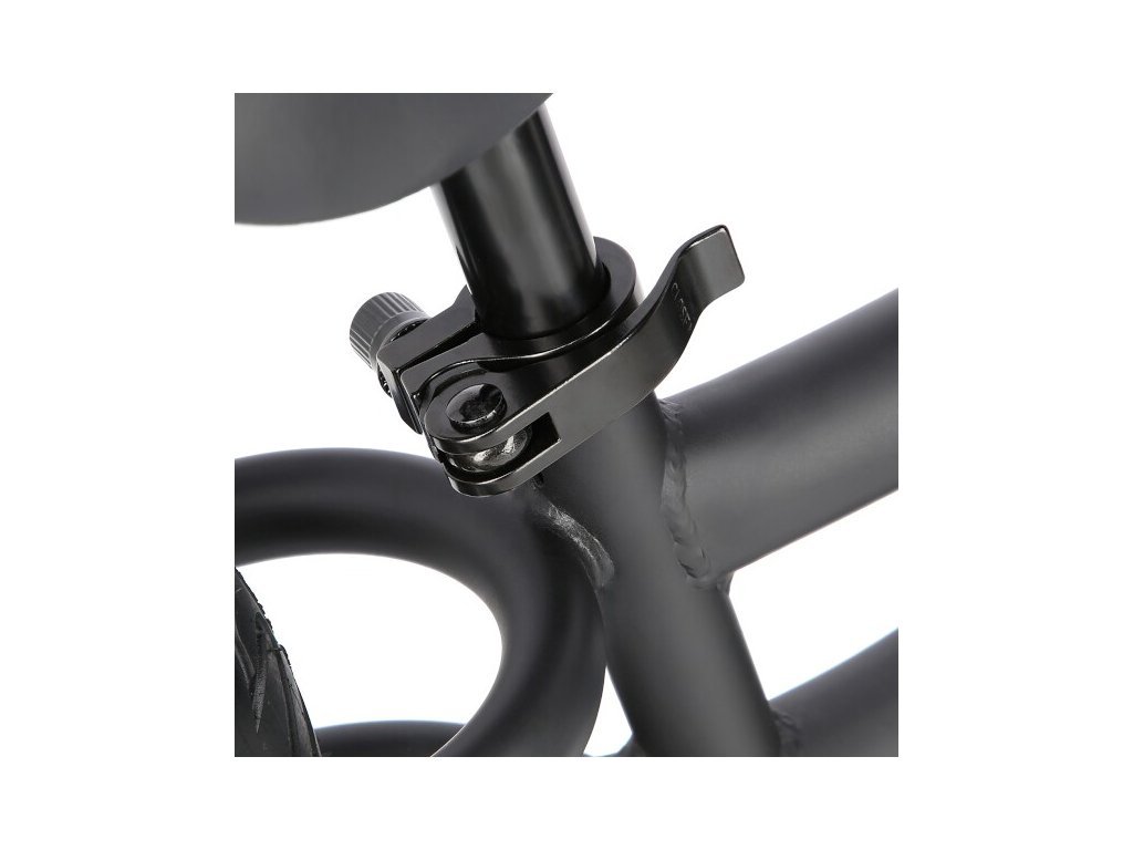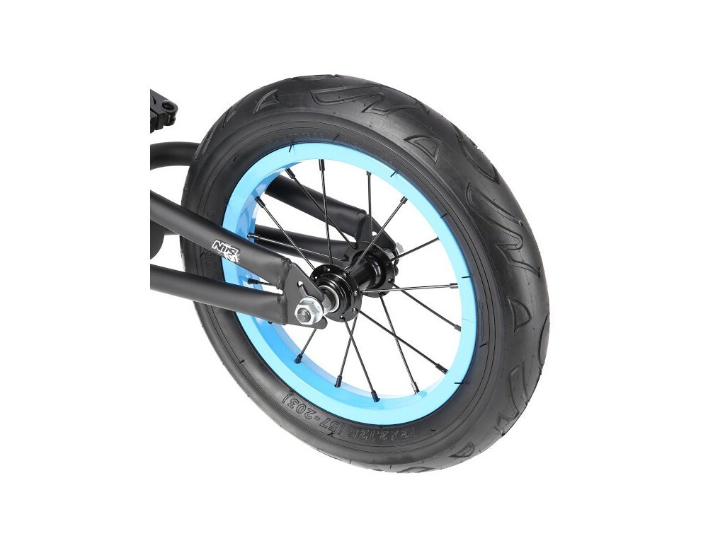 Az RB202 szerkezet kiváló minőségű, festett acélból készült. A maximális biztonság érdekében minden éle le van kerekítve. A fogantyúk mindkét oldala csúszásmentes markolattal és végdugóval van ellátva, ami megakadályozza a tenyér csúszását. Az alumínium, fonott kerekek 12" felfújható gumival vannak ellátva. A kormány és az ülés magassága állítható.