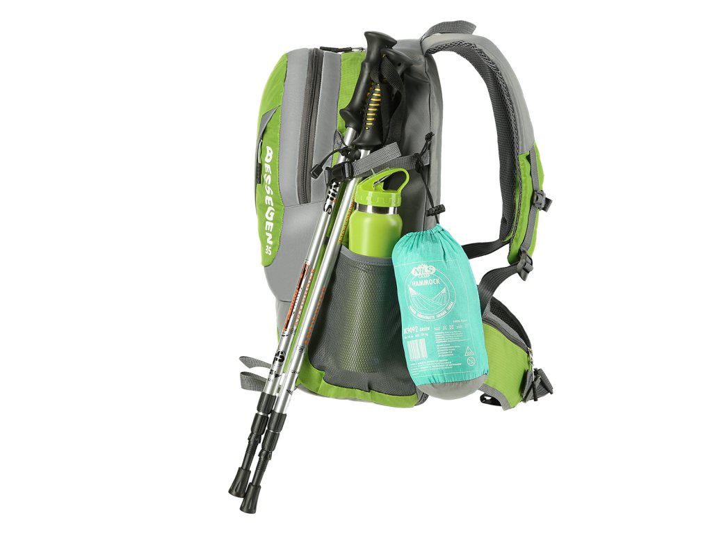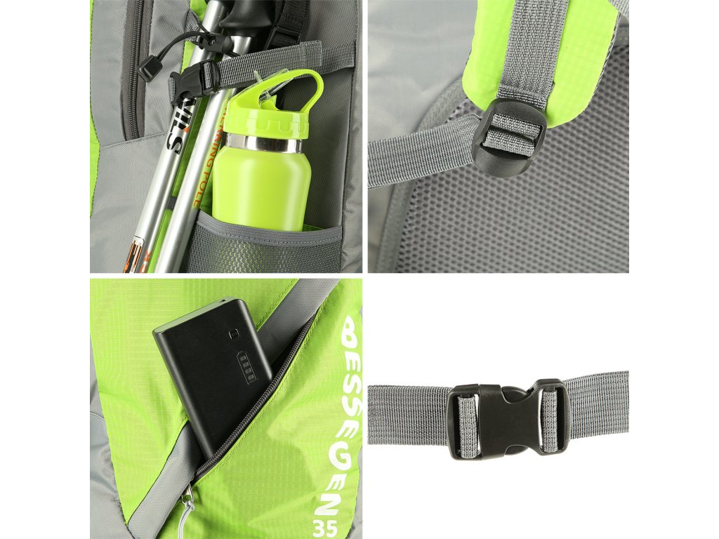 A Bessegen modell összesen 3 rekesszel rendelkezik, melyeknek teljes űrtartalma 35 liter. A nagy főrekesz duplaoldalas cipzárral nyílik, ahol beltér megfelelően nagy minden szükséges tárgy tárolására egy egésznapos kirándulásra. A középső rekeszbe beleférnek a dokumentumok és más anyagok A4-es nagyságig. Az elülső rekesz kisebb tárgyak tárolására szolgál, mint amilyen a telefon és a pénztárca. A hátizsák két oldalán hálórekesz található, melyben elfér egy flakon, hosszabb tárgyak pedig bebiztosíthatóak csatos szíjakkal. A z oldalon lévő fűzőlyuk a turisztikai botok odaerősítésére szolgál. Az utolsó két cipzáras zseb a derékszíjakon vannak elhelyezve, ezeket a legkisebb tárgyak tárolására lehet használni – ilyen a kulcs vagy az érme.