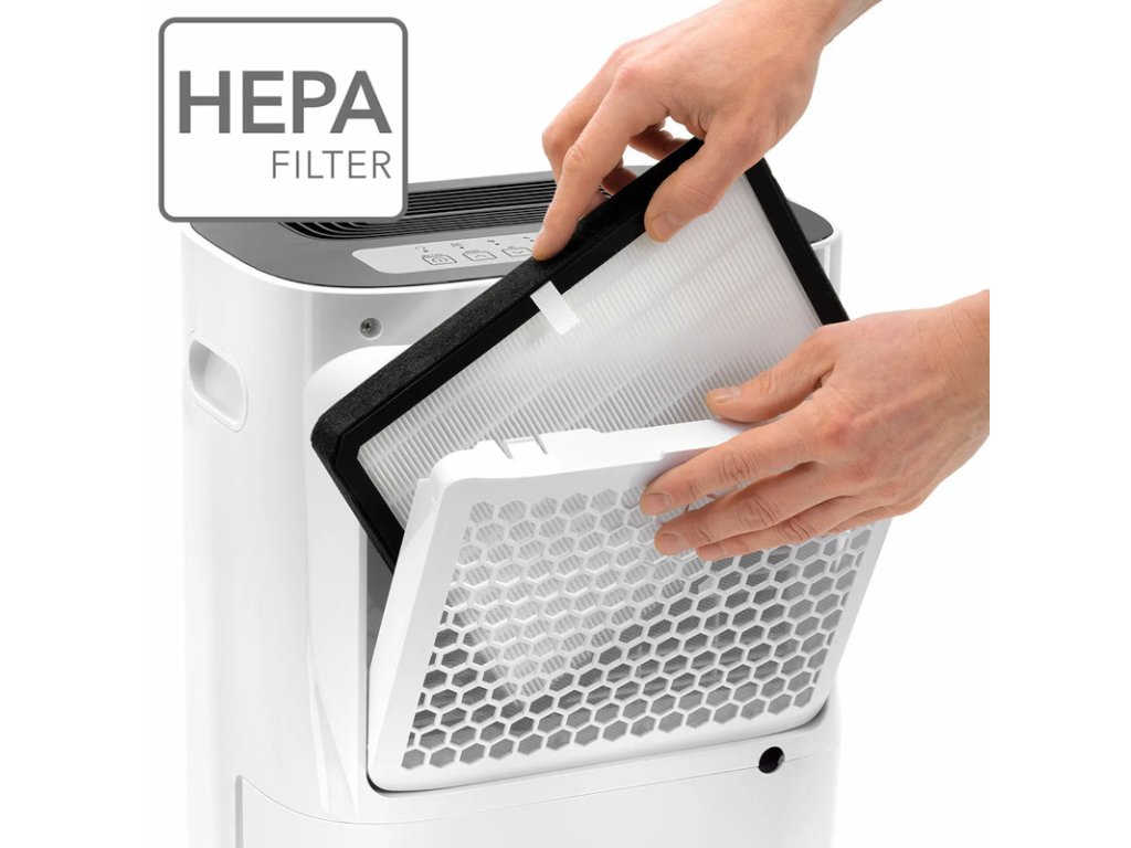 A beltéri levegő minőségét javító két technológia együttes hatékonyságának köszönhetően a szél nélküli 2 az 1-ben páramentesítő teljesen automatikusan szabályozza a páratartalmat az egészséges szintre vagy egy tetszőlegesen megválasztható célértékre, 30% és 80% relatív páratartalom között.