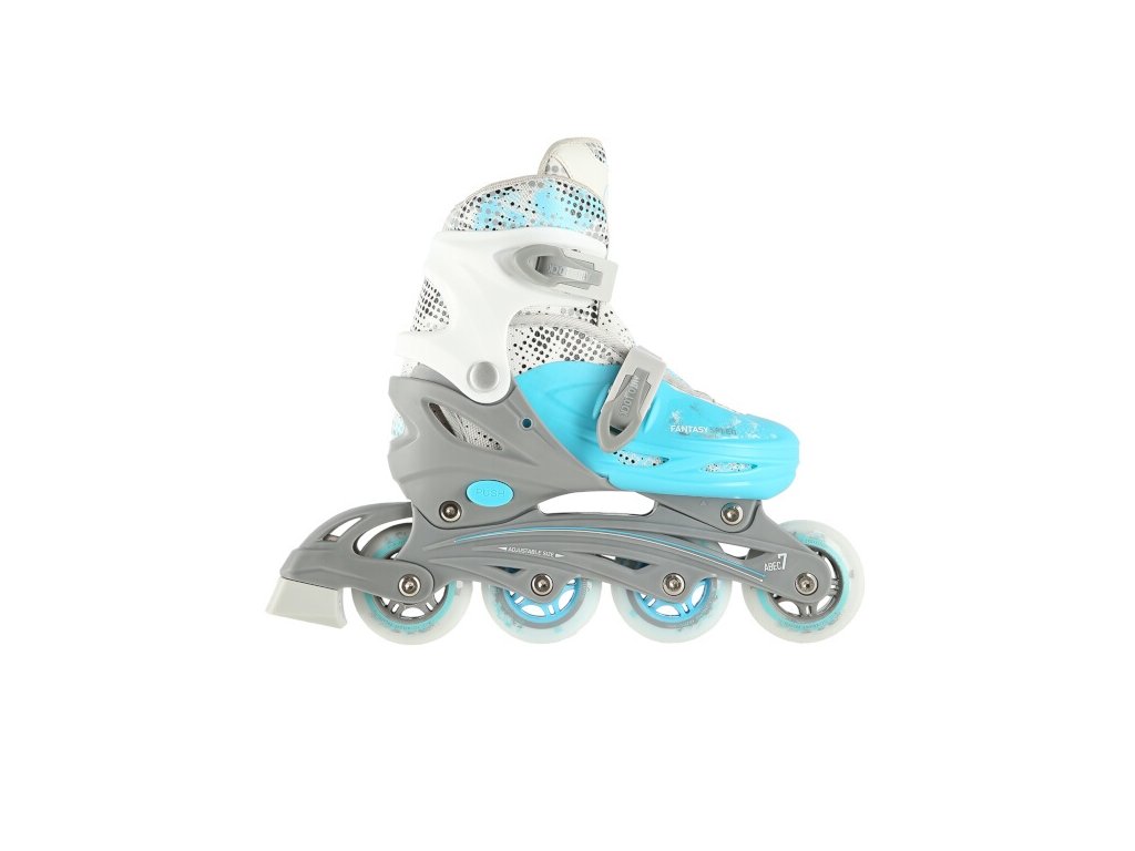 A műanyag vázon puha PU kerekek találhatók ABEC7 csapágyakkal a fürge közlekedésért. A külső cipő egy gombnyomással négy méretre állítható, ez a megoldás lehetővé teszi a pontos méretezést az aktuális igényeknek megfelelően, vagy a gyermek lábával „együtt növő” cipőként való használatot.