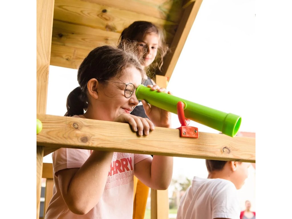 Élénk színeinek és változatos és játékos tevékenységeinek köszönhetően ez a gyönyörű fából készült játszótér igazi játékparadicsommá varázsolja kertjét! Nagyon jól felszerelt. Akár 6 kis kerti kalandor befogadására is alkalmas! Egy hely a kertben, ahol csak szórakozhatnak, nevethetnek, játszhatnak és történeteket találhatnak ki. Míg a nagyobbak teljes sebességgel csúszkálnak le a csúszdán, addig a kicsik a homokozón szórakoznak, amivel kellemes, homokon eltöltött pillanatokat tölthetnek el. Tartalmaz egy biztonsági hálót, amely megvédi a homokot az állatoktól, így a gyerekek biztonságosan játszhatnak.