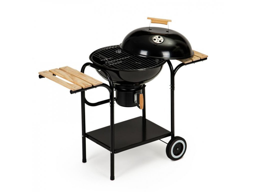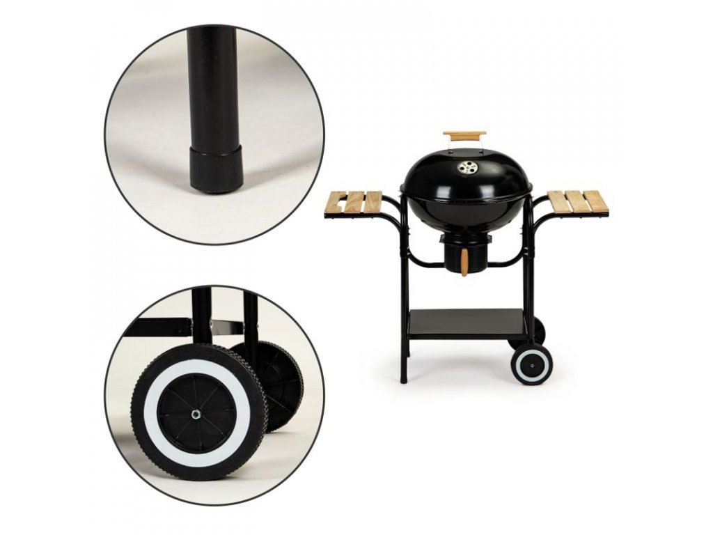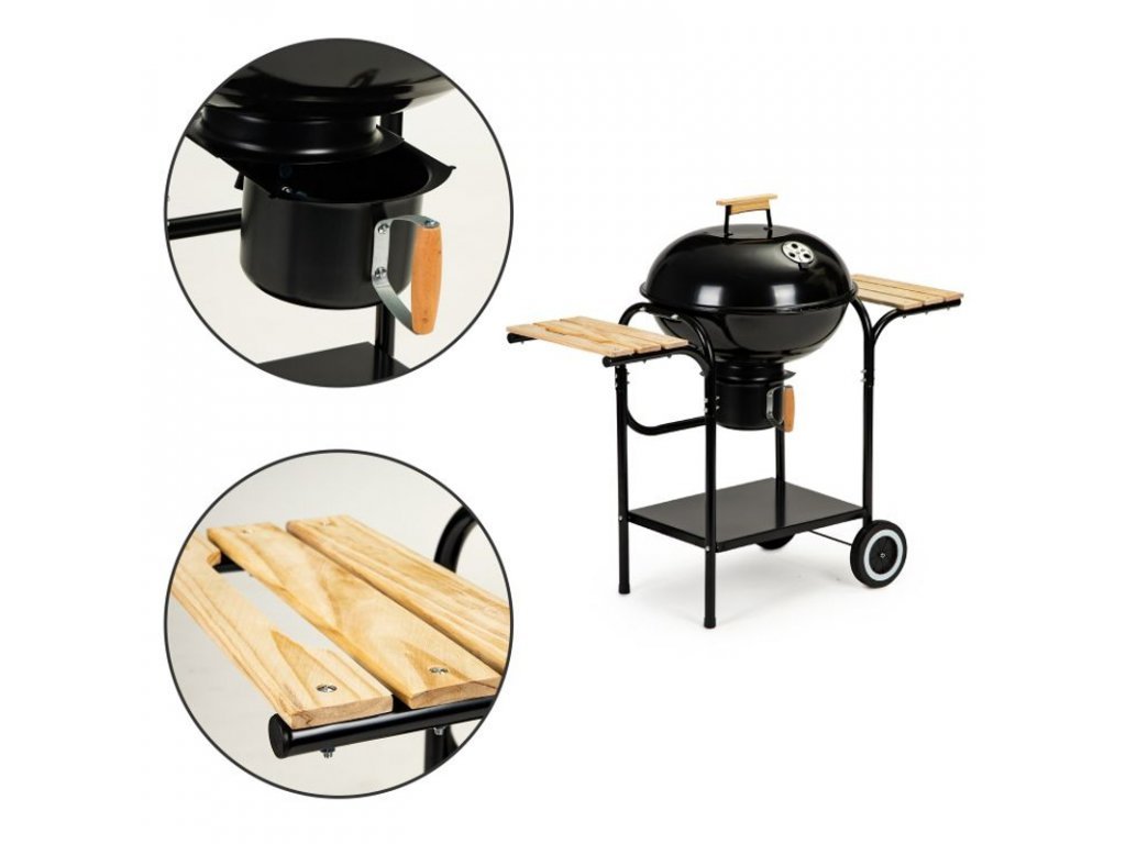 A grillt stabil fémszerkezet jellemzi, méretei: 98x35x85 cm, amelyek biztosítják a biztonságot az ételek keverésekor. A grill könnyen szállítható, mert két beépített kereke van. A grill 3 polccal van felszerelve, ennek köszönhetően minden kéznél lesz. A nagy grillterület mögött 40 cm átmérőjű krómozott rács található. Ezenkívül a grillnek van egy fedele, amely javítja a grillezési folyamatot és megvédi a széltől. A grill hamutól való megtisztításának egész folyamatát az alá szerelt fogantyúval ellátott hamutartó javítja.