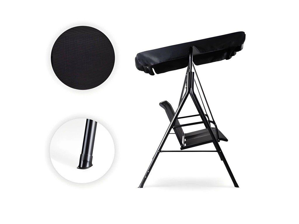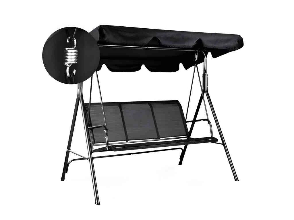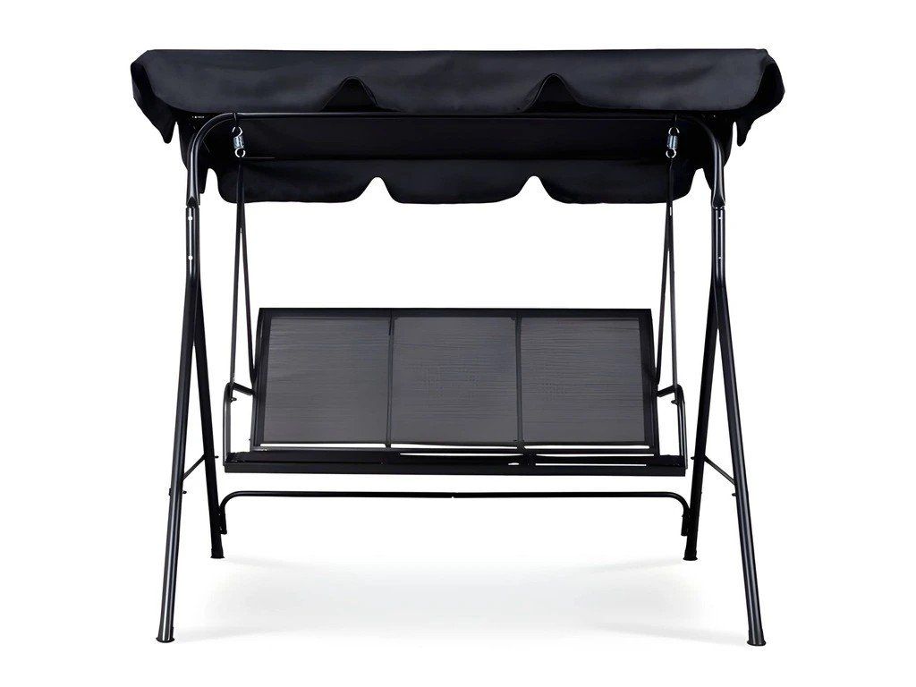Ez a kerti hinta kertbe, teraszra, erkélyre vagy kertbe készült, és kényelmes pihenőhelyet biztosít három ember számára. Szerkezete tartós acélvázra épül, amely stabilitást és tartósságot biztosít a mindennapi kültéri használat során. Az ülőke légáteresztő textilhálóból készült, amely elősegíti a légáramlást, és eső után gyorsan szárad. A rugók biztosítják a sima és egyenletes lengést, növelve a kényelmet. Az állítható, fodros tető lehetővé teszi a személyre szabott védelmet a nap vagy a könnyű eső ellen. A csúszásgátló lábtartók növelik a stabilitást és védik a padlót. A maximális teherbírás 260 kg.