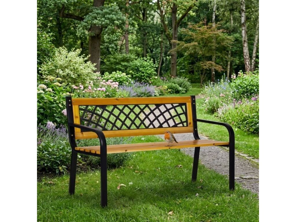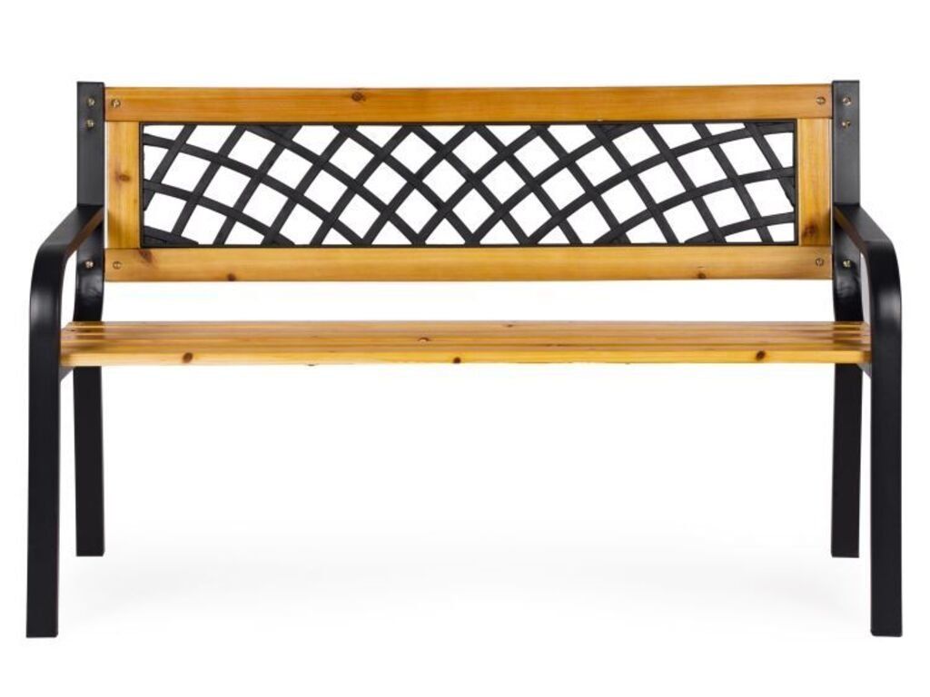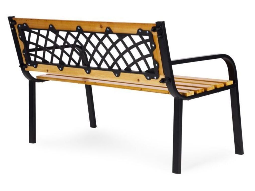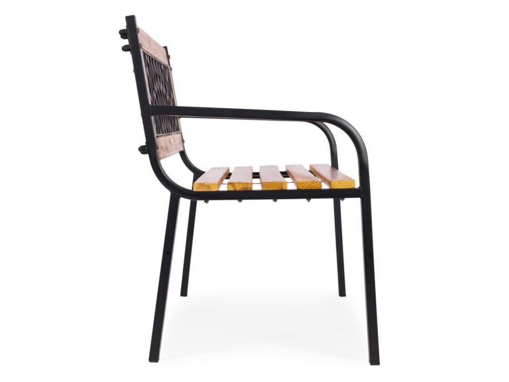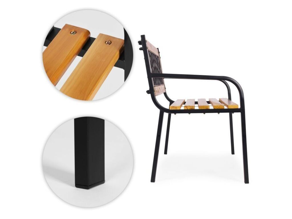A pad váza porszórt acélból készült, ami növeli az ellenállást a sérülésekkel és az időjárás viszontagságaival szemben. A natúr fa ülőfelület kényelmet biztosít, és jól illeszkedik a környezetbe. Az ergonomikus háttámla dekoratív PVC töltettel növeli az ülés kényelmét, és stílusos, áttört megjelenést kölcsönöz az egész darabnak. A csúszásgátló lábak növelik a stabilitást használat közben, és tovább védik a padlót a karcolásoktól. A pad maximális teherbírása 260 kg.