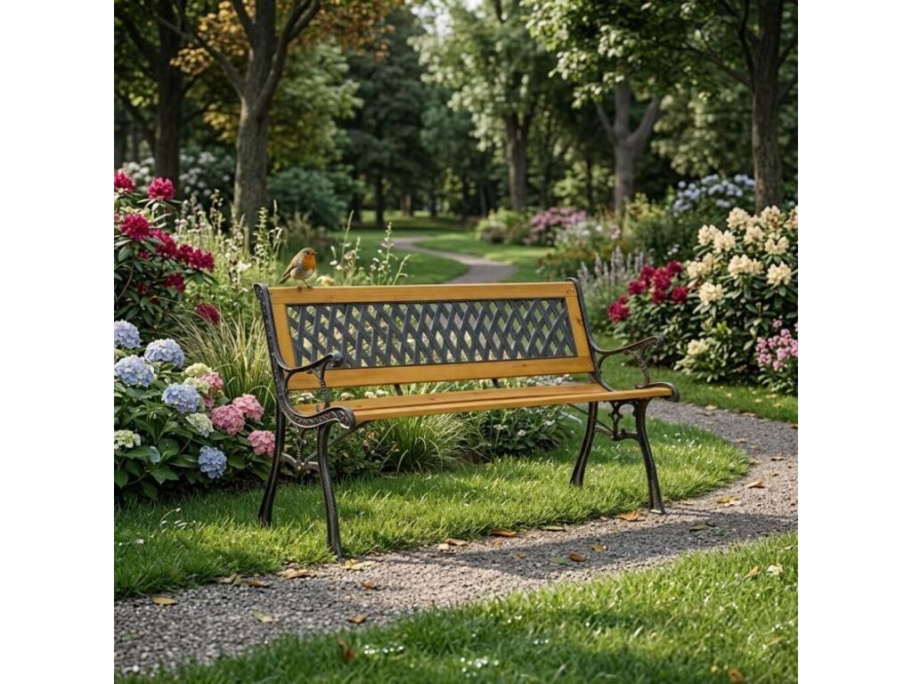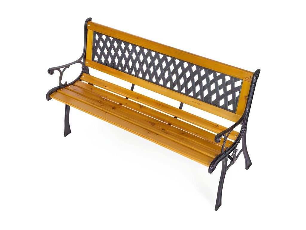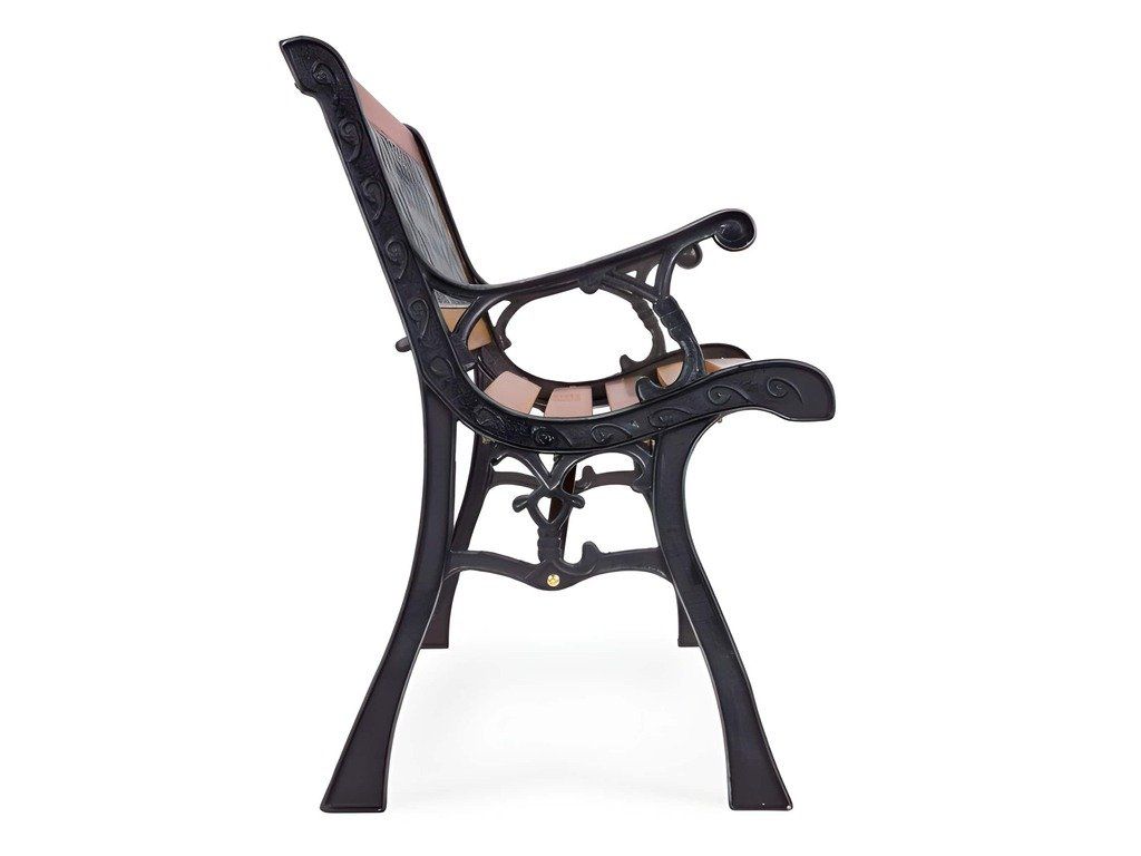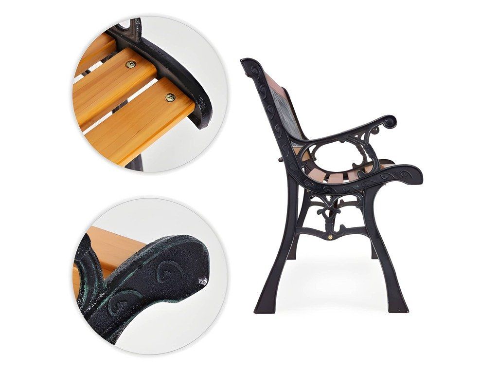 Kertbe, teraszra és erkélyre tervezett kerti pad. Kialakítása a természetes fa ülőfelületet tömör öntöttvas lábakkal ötvözi, ami stabilitást, tartósságot és kényelmet biztosít a mindennapi használat során. Ergonomikus háttámlával és dekoratív PVC párnázattal rendelkezik a nagyobb ülési kényelem és az esztétikus megjelenés érdekében. Úttörő kialakításának köszönhetően a pad tökéletes kiegészítője mind a klasszikus, mind a modern enteriőröknek. A felhasznált anyagok és a védőbevonat növeli az időjárási hatásokkal szembeni ellenállást. A maximális teherbírás 260 kg, így ideális a mindennapi kikapcsolódáshoz a szabadban.