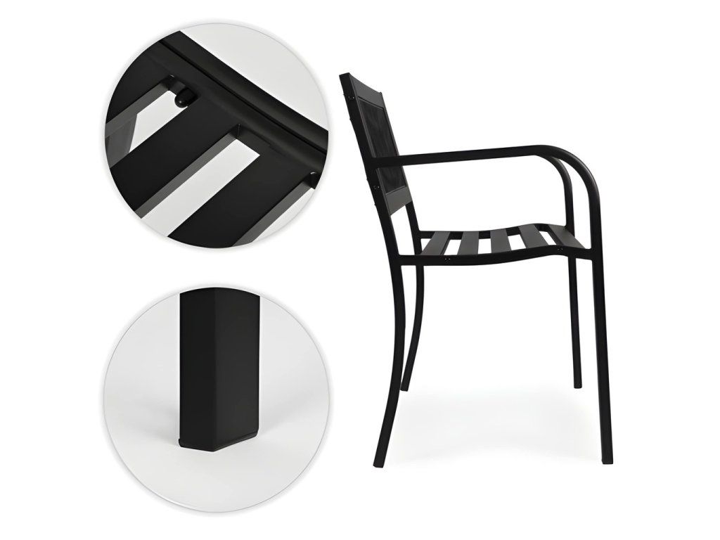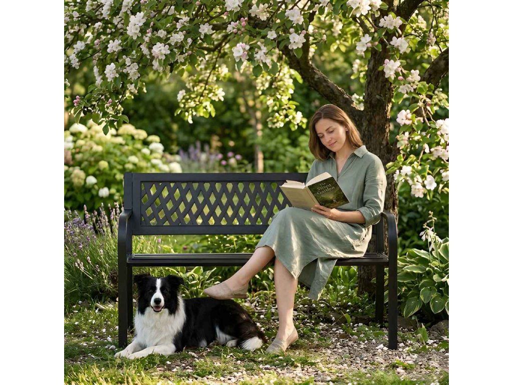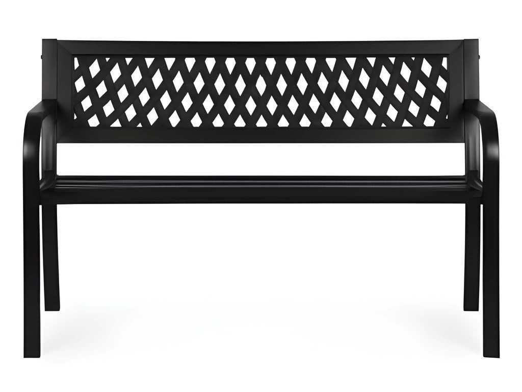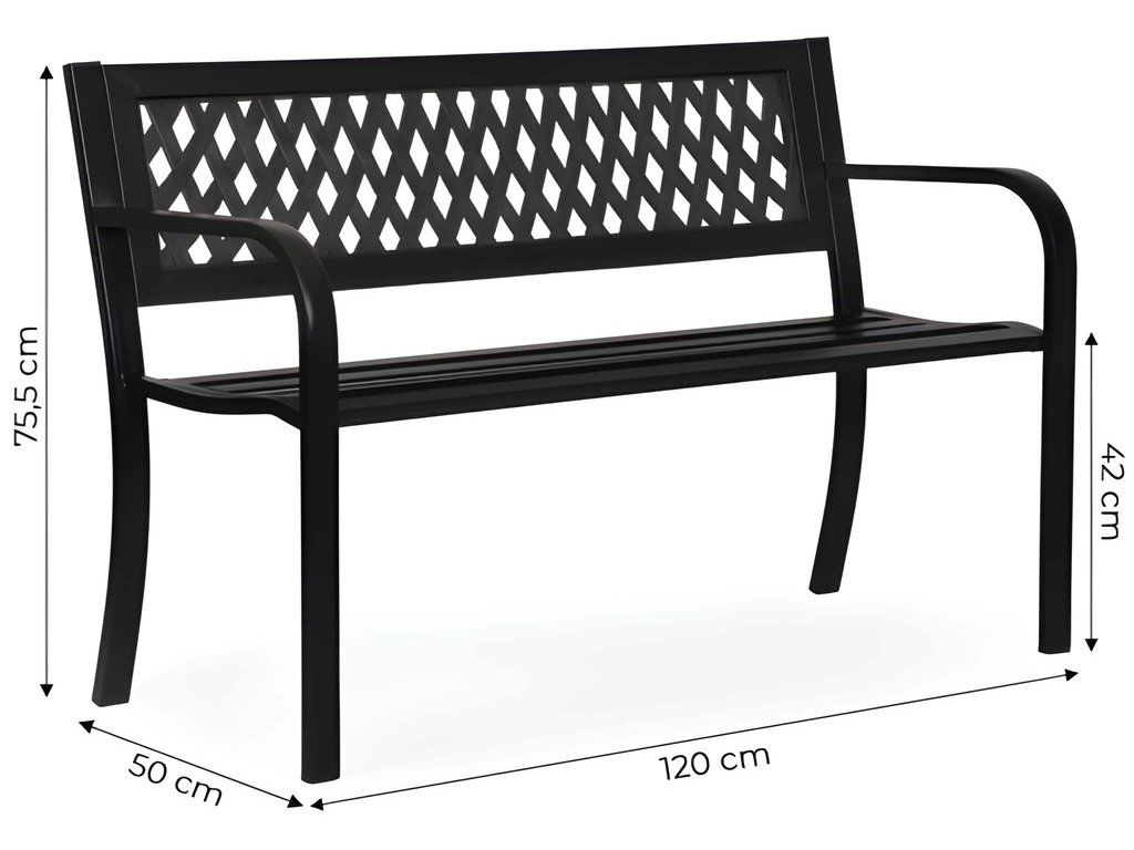 Ez a háttámlás kerti pad kertekbe, teraszokra és erkélyekre készült. A szerkezet porszórt acélból készült, ami növeli az ellenállást a korrózióval, a mechanikai sérülésekkel és a változó időjárási viszonyokkal szemben. A háttámla dekoratív, áttört töltettel rendelkezik, amely tartós PVC-ből készült, nedvességálló és kültéri használatra alkalmas. A csúszásgátló lábak javítják a stabilitást és védik a padlót a karcolásoktól. Ez a modell univerzális, elegáns kialakítású, így klasszikus és modern belső terekbe egyaránt alkalmas. A maximális teherbírás 260 kg.