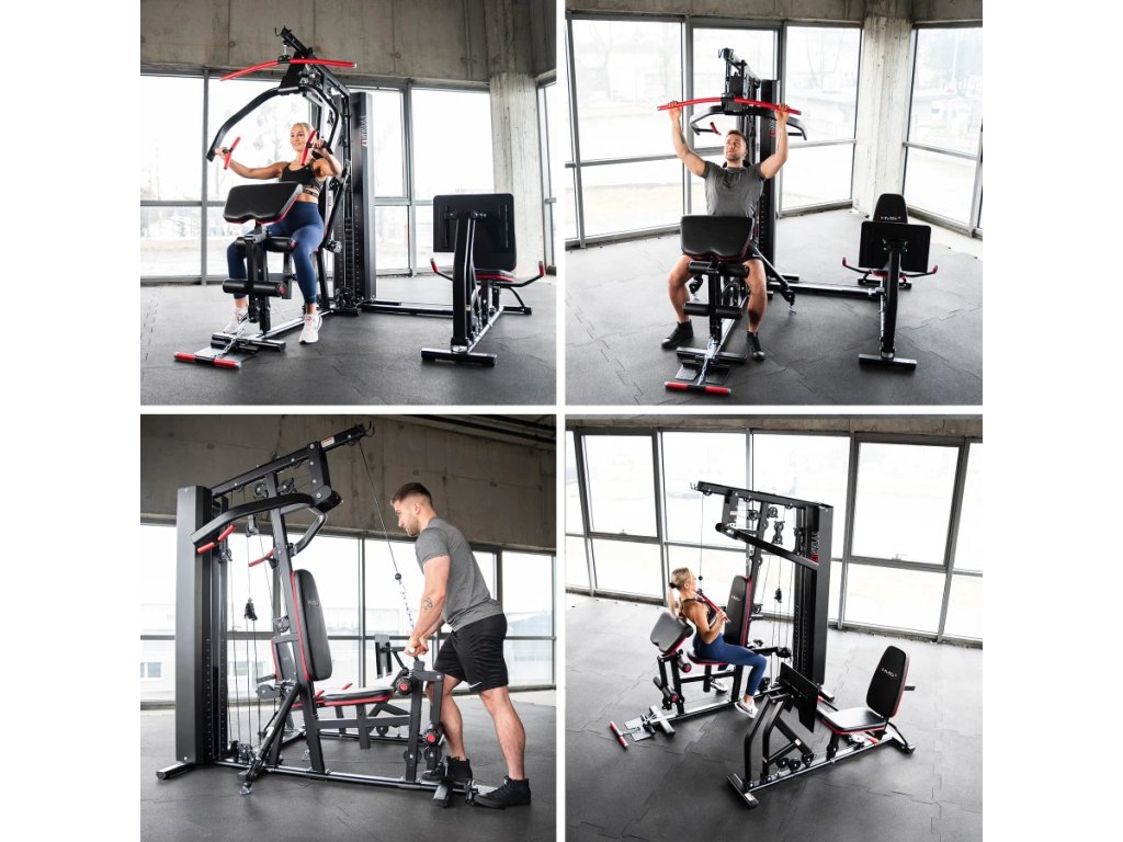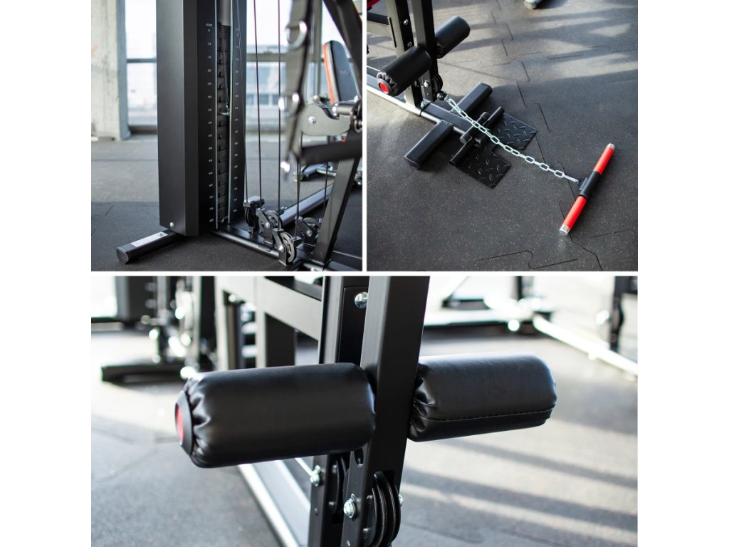 A torony 80 kg súlyú súlyköteggel rendelkezik, amely 5 kg-os lépésekben állítható. Ez lehetővé teszi a pontos intenzitás beállítását a céljaidnak megfelelően. A három csiga – felső, középső és alsó – teret biztosít a teljes testet megmozgató gyakorlatok változatos elvégzéséhez.