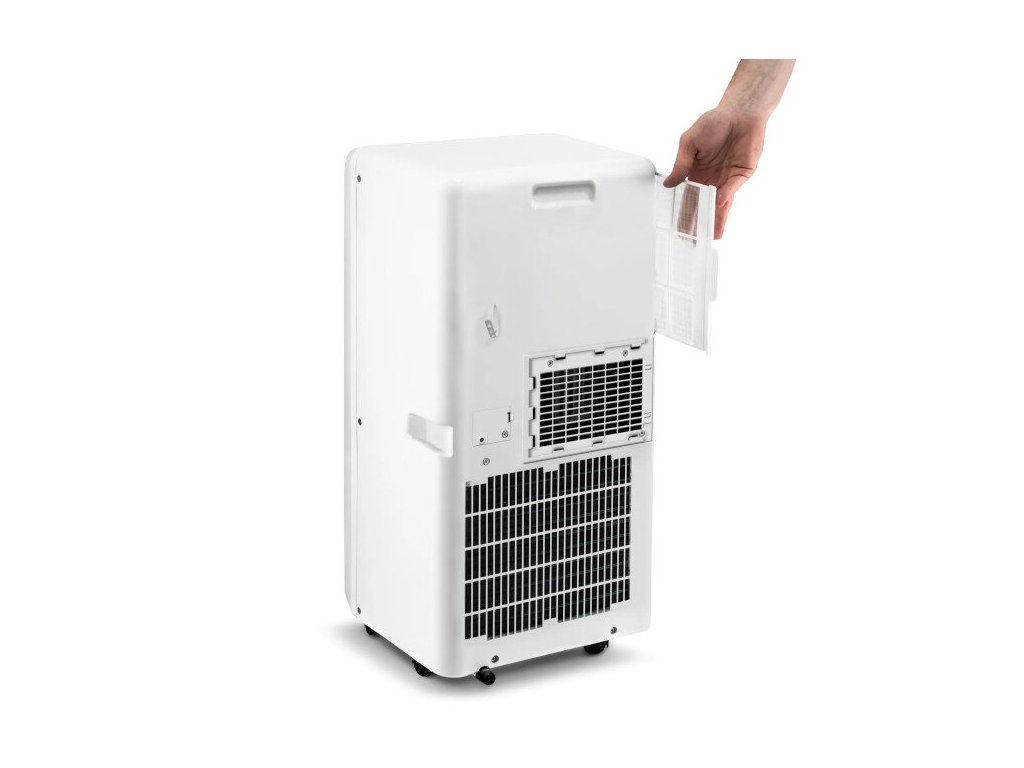 A készülék könnyen futó szállítókerekekkel van felszerelve. Az oldalsó süllyesztett fogantyúknak köszönhetően a klíma gyorsan és egyszerűen átvihető egyik helyiségből a másikba.