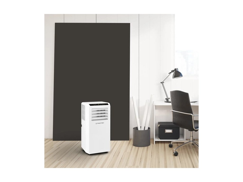 A TROTEC PAC 2010 SH klímaberendezés a készülékbe épített vezérlőpulton kívül a csomagban található infra távirányítóval is vezérelhető. Nem kell felkelnie – minden funkció távolról is beállítható.