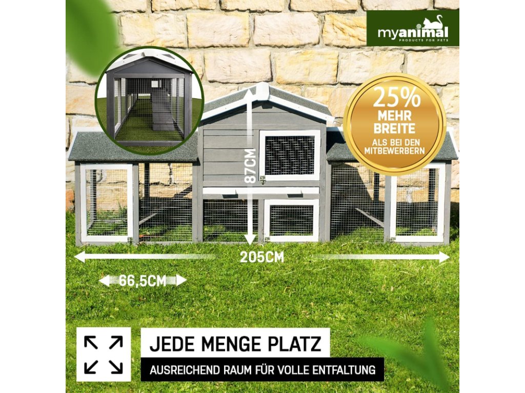 A saját háziállat minden gyermek álma. Összebújni egy kis szőrös négylábú baráttal, ellátni őt élelemmel és tisztasággal - ez nagyon egyszerű. A MyAnimal MH-03 nyúlketrec nem csak stabil és minőségi anyagokból készült, de két szintet is kínál, amelyeken a háziállatok tombolhatnak. Mindenekelőtt kényelmes szabadtéri kifutót biztosíthat nyulainak anélkül, hogy állandóan figyelnie kellene őket.