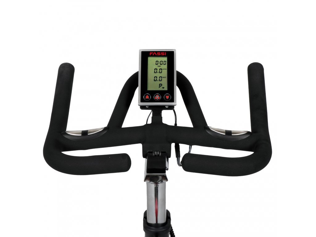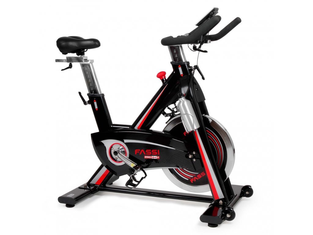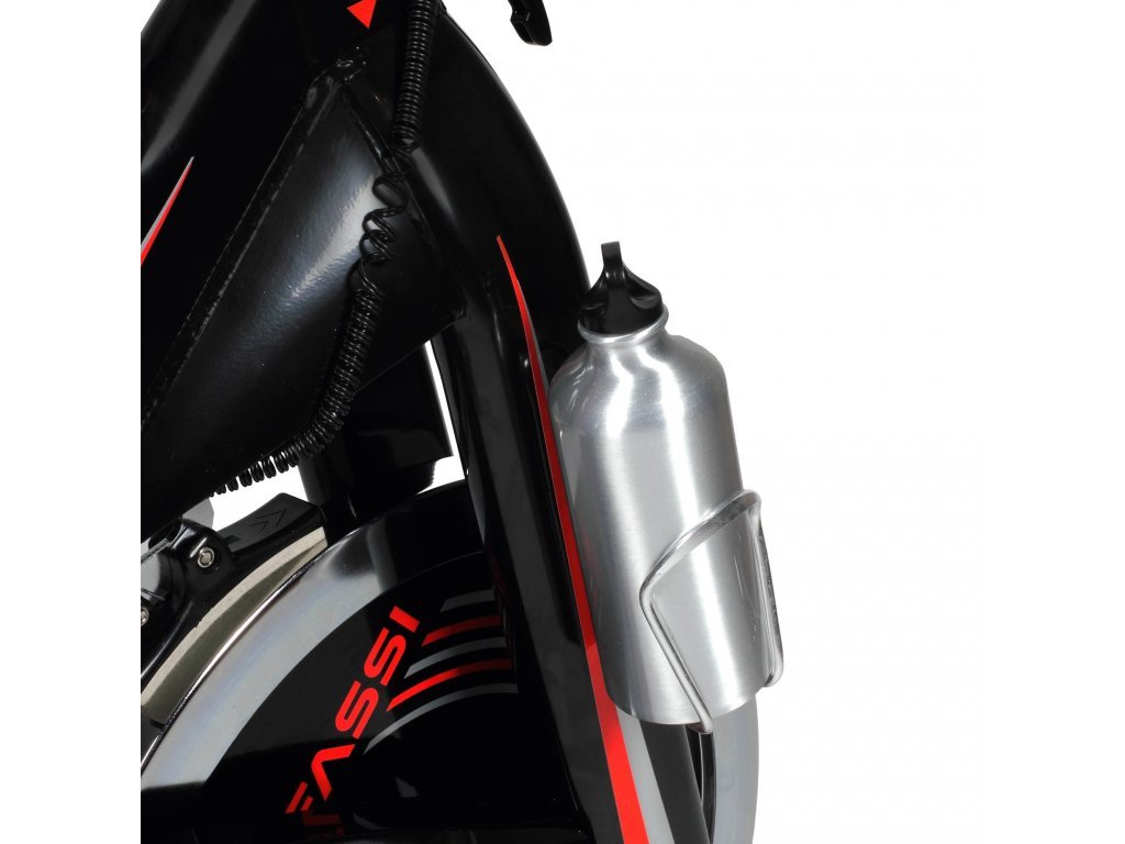 Ennek a Diadora Fassi Pro 24F fitness kerékpárnak a szíjtárcsája biztosítja a sima és csendes menetet. Vezeték nélküli pulzusszámmérővel rendelkezik, melyet kézi pulzusérzékelővel felügyelhet. A számítógép hatékonyan mutatja az időt, a távolságot, az égetett kalóriákat, a sebességet és az impulzust. A Fassi F 24 Pro kerékpár magas színvonala kiváló ergonómiával és különféle beállítási lehetőségekkel is rendelhető: a kormány és az ülés, sőt, mind vízszintesen, mind függőlegesen beállítható, hogy kényelmesen érezzék magukat. A szállítókerekek könnyítik a szállítást, így sok erőfeszítés nélkül megváltoztathatja az edzése helyét. Ne hagyja ki a technikai részleteket, amelyeket gondosan tervezve voltak, hogy javítsák képzési élményét, például egy klasszikus vizes palacktartót, kiegyensúlyozott futópedált vagy biztonsági féket.