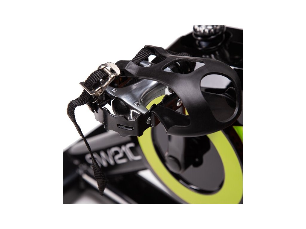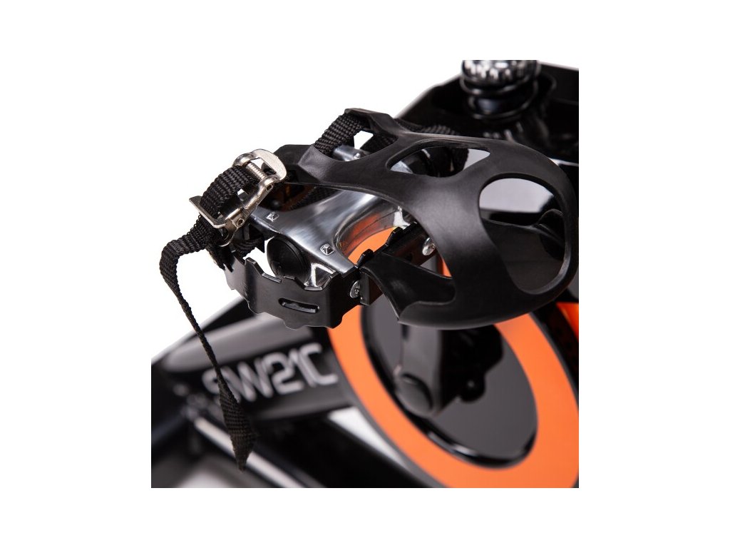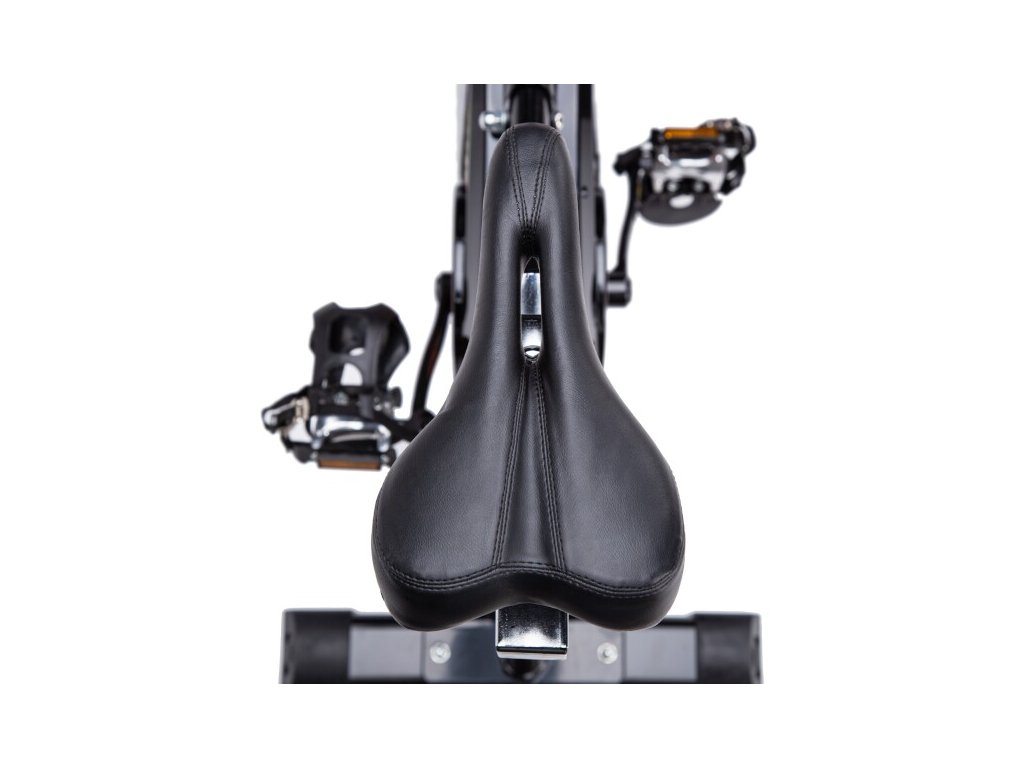 A nyerget alátámasztó hátsó kar lengéscsillapítóval van felszerelve, melynek célja a felhasználói kényelem növelése, amit nagy sebességnél különösen értékelni fog. Az acél pedálok állítható pánttal ellátott kosarakkal vannak felszerelve. Ez a megoldás bármilyen cipő használatát lehetővé teszi. A szállítókerekekkel ellátott elülső stabilizátor lehetővé teszi az edzőgép könnyű mozgatását és tárolását használaton kívül. Mindkét stabilizátor állítható magasságú csavarokkal van felszerelve, hogy az edzőgépet még egyenetlen padlón is vízszintbe tudja állítani.