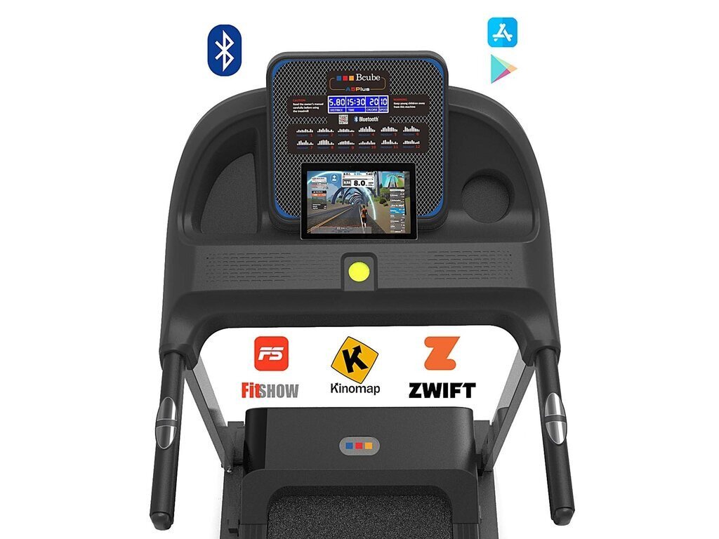 A beépített Bluetooth funkcióval könnyedén csatlakoztathatja a futópadot kedvenc eszközeihez, például TV-hez, számítógéphez, okostelefonhoz és táblagéphez. Töltse le a kompatibilis alkalmazásokat, mint például a Kinomap, a Zwift és a Fitshow, és élvezze a strukturált edzéseket, a motiváló zenét, a személyre szabott edzést és a kihívásokat.