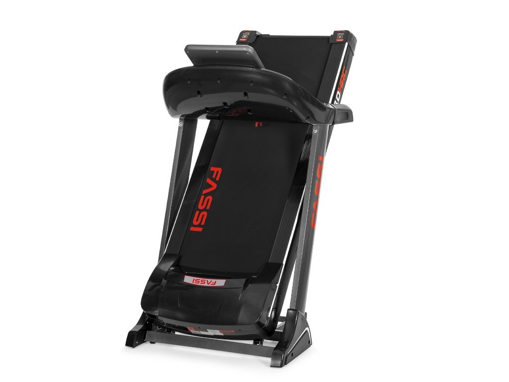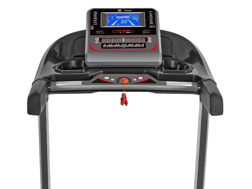 A Fassi F 8.0 elektromos futópad Bluetooth-kapcsolattal van felszerelve (ezen keresztül mobiltelefonon csatlakoztathatja a FITSHOW testedző alkalmazáshoz), MP3-csatlakozóval ellátott hangszórókkal, USB-porttal és fejhallgató-csatlakozással rendelkezik. A maximális futási kényelem érdekében 51x140 cm-es futófelülettel rendelkezik, és egy 3 LE-s motor lehetővé teszi a 20 km / ó sebesség elérését. Az elektromos lejtés 18% -ig állítható be. Minden információ egy háttérvilágítású LCD képernyőn jelenik meg, hogy az üzemeltetési paraméterek áttekinthetőek legyenek azonnali és áttekinthetőek. A Running Fassi F 8.0 készüléken 91 előre beállított program közül választhat, és tartalmazhat egy programot a testzsír kiszámításához, a pulzusszabályozó programokat és a felhasználó által testreszabható programokat. A pulzusszám a pulzusérzékelőknek és az integrált vezeték nélküli pulzusmérőnek köszönhetően mindig ellenőrzés alatt áll. A mellkasövet a csomag tartalmazza.