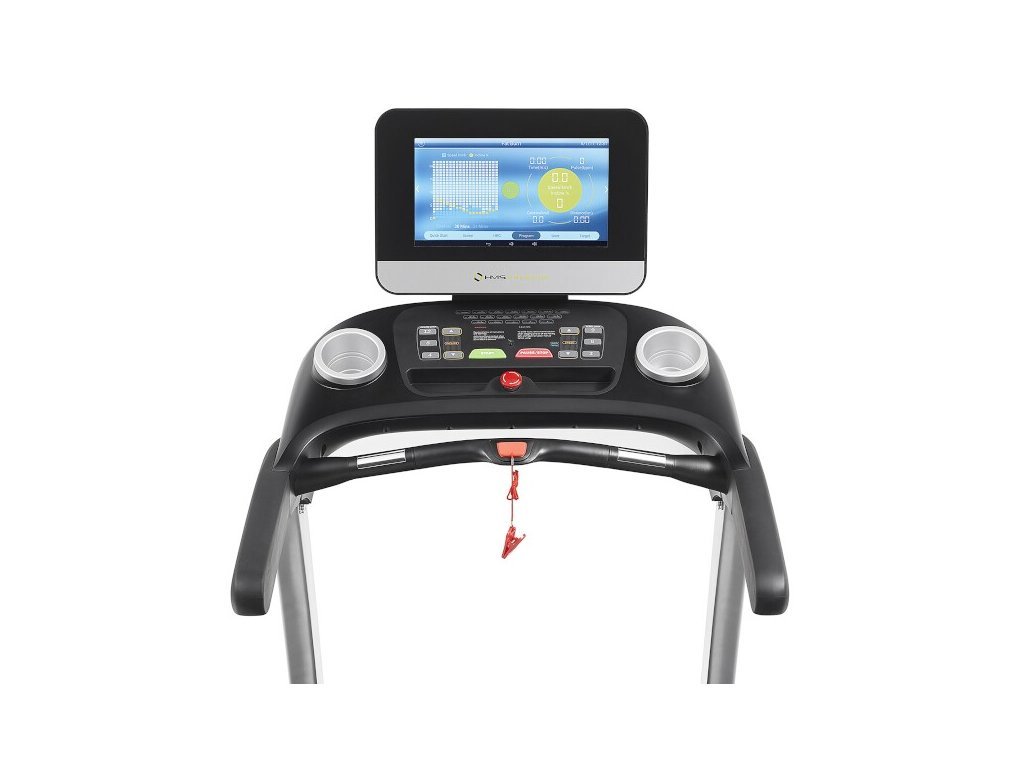 A nagy és áttekinthető vezérlőpult biztosítékkal van ellátva, amely esés esetén megállítja a futópadot. Továbbá fel van szerelve fogantyúkkal a pulzusméréshez és két nyílással például vizespalackhoz.