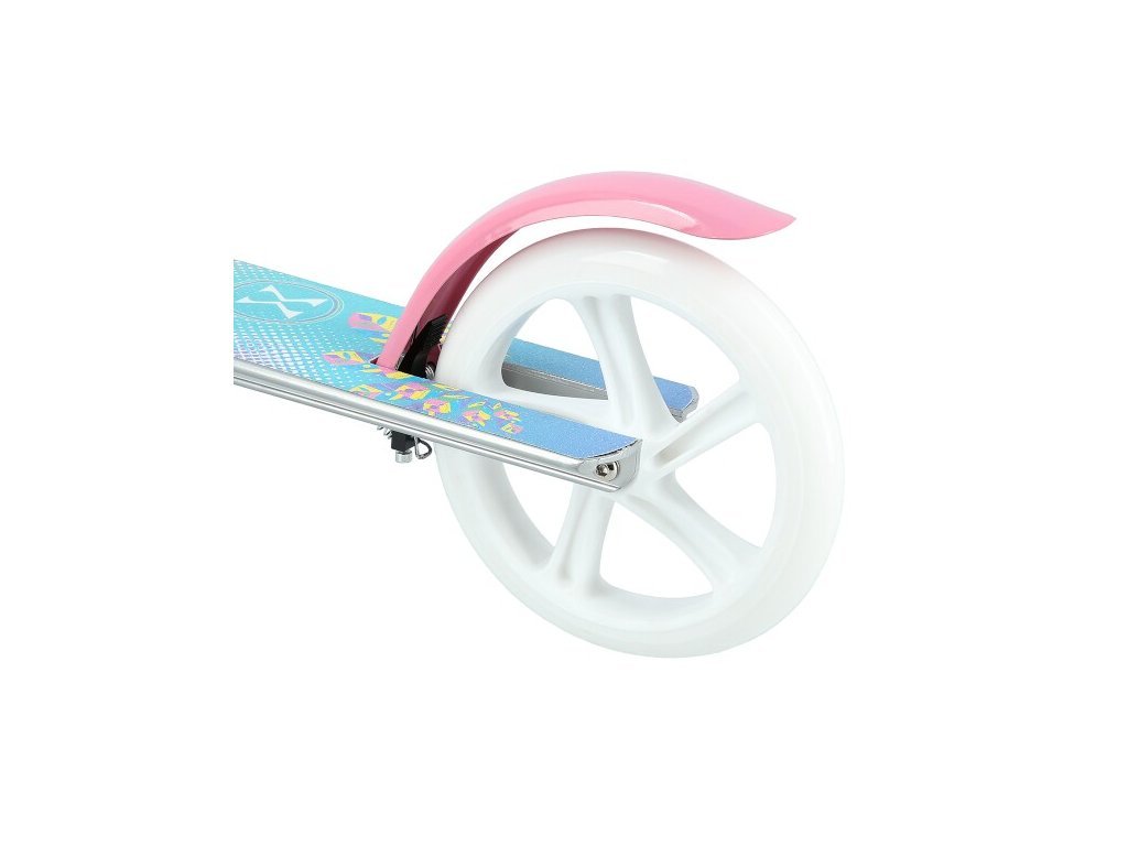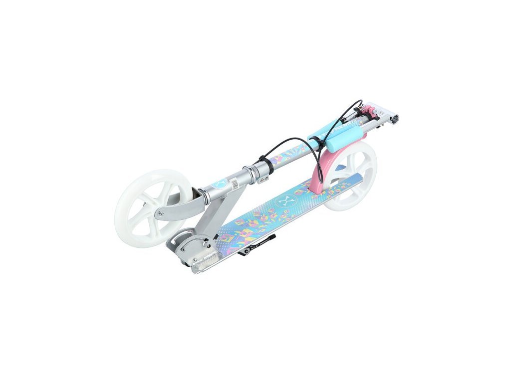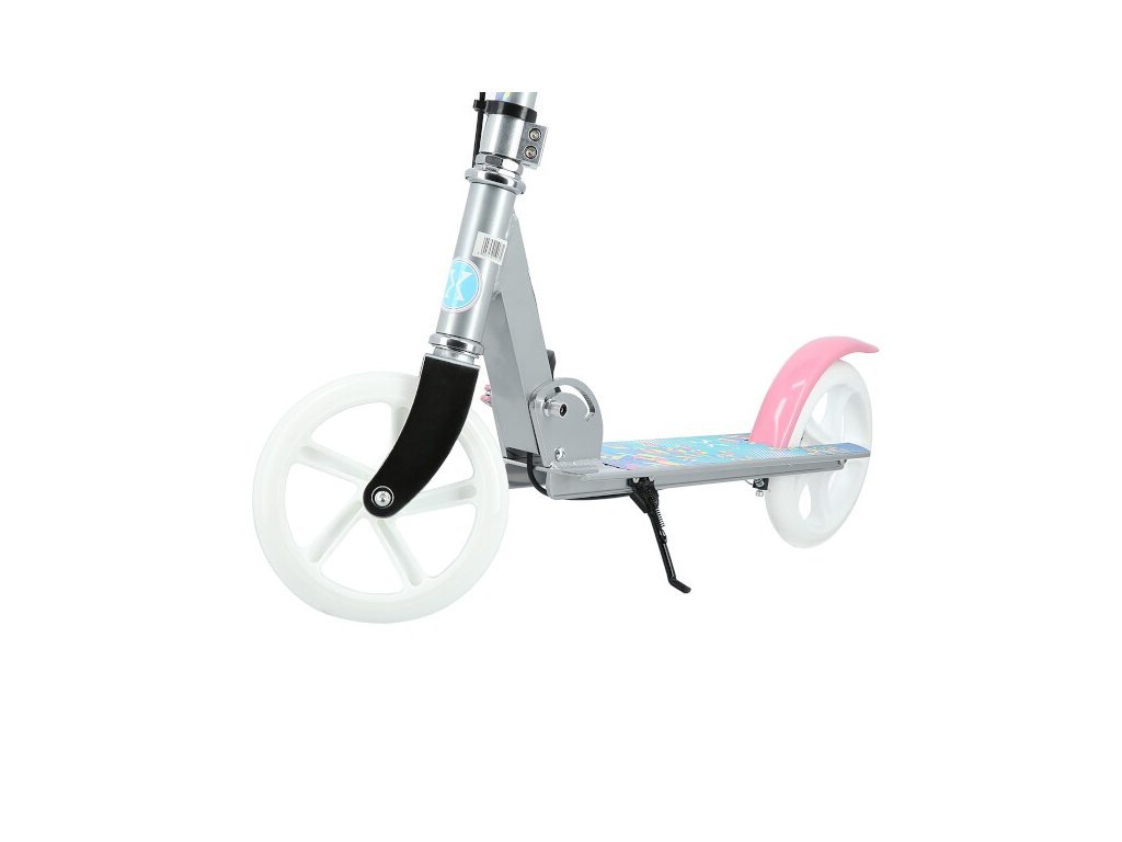 A hátsó sárvédő lábfékként szolgál, a sárvédő alatt egy külön kis fék található, amelyet egy kar irányít a kormányról. A kormány gumifogantyúkkal van felszerelve, amelyek biztosítják a szilárd és kényelmes fogást. A nagy kerekek ABEC 7 csapágyakkal vannak felszerelve. Ez a kombináció garantálja a sima és biztonságos vezetést. A platform bal oldalán egy összecsukható állvány található.