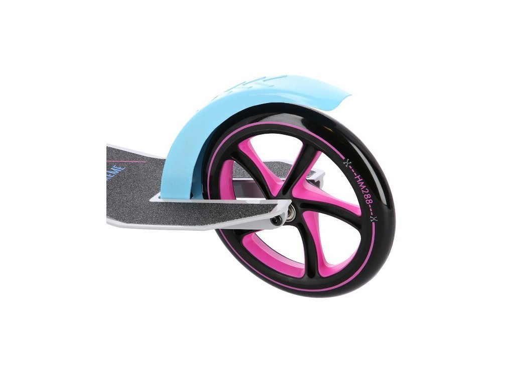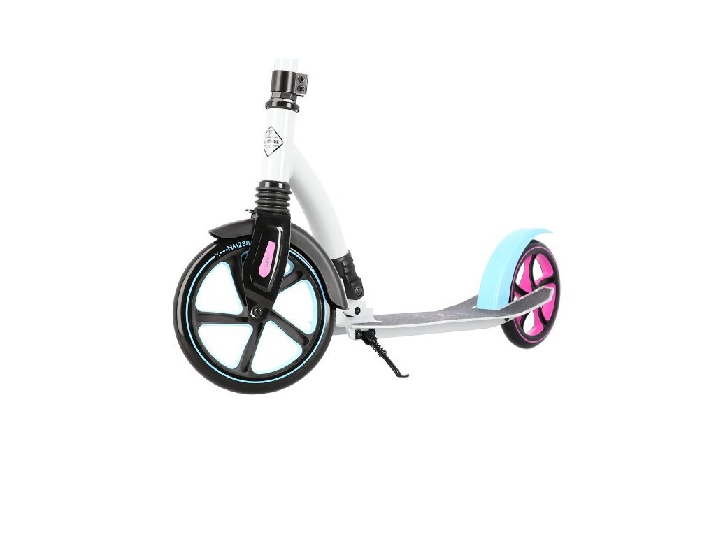 A HM228-at az első kerék lengéscsillapítója, a kerekekben és a markolatban megtalálható pasztell színek jellemzik.