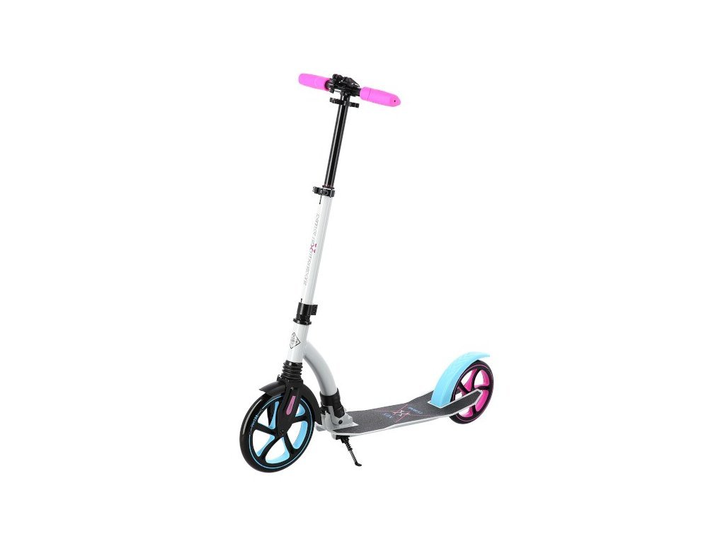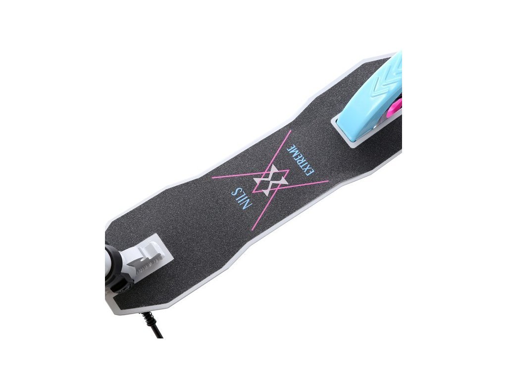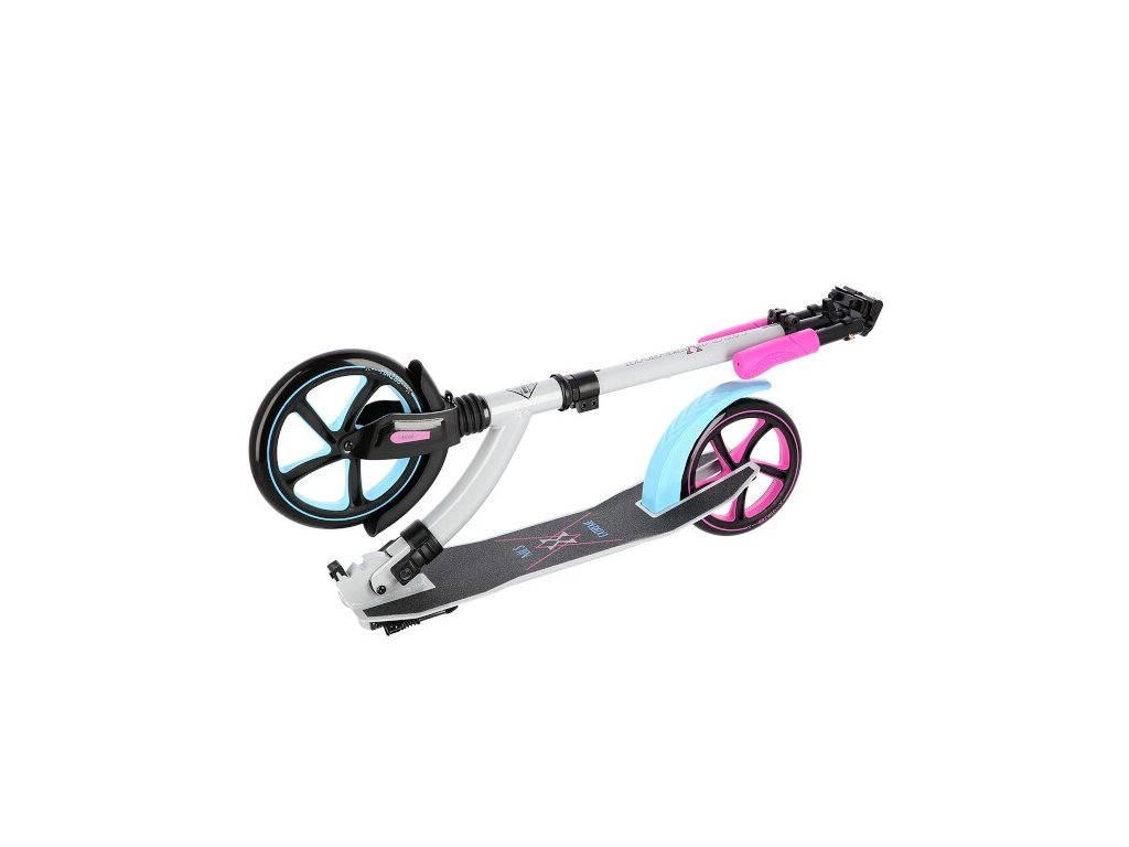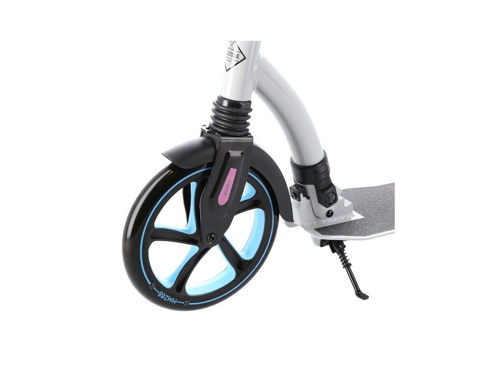Az első felfüggesztés növeli a vezetési kényelmet. A lengéscsillapító elnyeli az ütéseket, így egyenetlen aszfalton vagy térkövön haladni is kellemesebb és csendesebb. A hátsó sárvédő nyomófékként szolgál. A kormány gumifogantyúkkal van felszerelve, amelyek biztosítják a szilárd és kényelmes fogást. A nagyméretű kerekek elöl 230 milliméteres és hátul 200 milliméteres átmérővel, ABEC 9 csapágyakkal vannak ellátva, a sima és biztonságos vezetés érdekében. Az első kerék sárvédője véd a felfröccsenő víz és a sár ellen.
