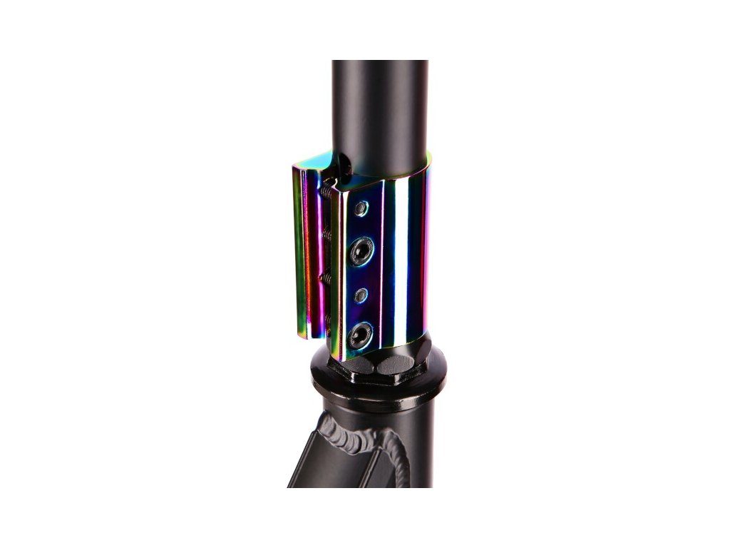 A HS002 roller háromkamrás alumínium fedélzettel és széles, menet nélküli kormányrúddal rendelkezik, amelyet négycsavaros rögzítéssel erősítettek. A kormánycsapszeg csavarral rögzíthető. A kormány természetesen 360°-os elfordulást tesz lehetővé. A gumi markolatok biztos fogást biztosítanak.