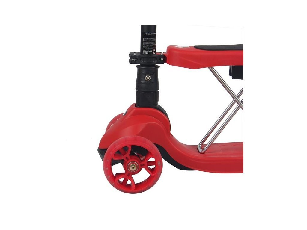 Minden kerék rejtett LED diódákkal rendelkezik, amelyek mozgáskor felvillannak, a széles kerék növeli a robogó stabilitását. A kormány magassága 63 - 80 centiméter között állítható.