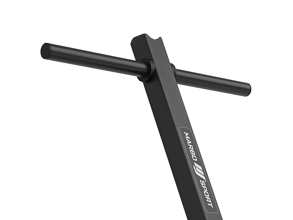 MARBO MH-S206 súlyzóállvány. Kiváló ergonómiája és méretei garantálják, hogy egy kisebb otthoni edzőterem minden súlya elfér rajta. A 40x40 mm-es profilokból készült szerkezet maximális teherbírása 200 kg. Az állvány négy súlycsappal rendelkezik, amelyek mindegyike 20 cm hosszú, a csap átmérője pedig 25 mm.