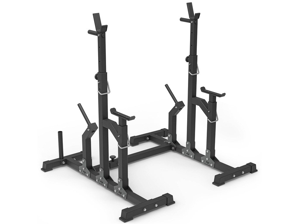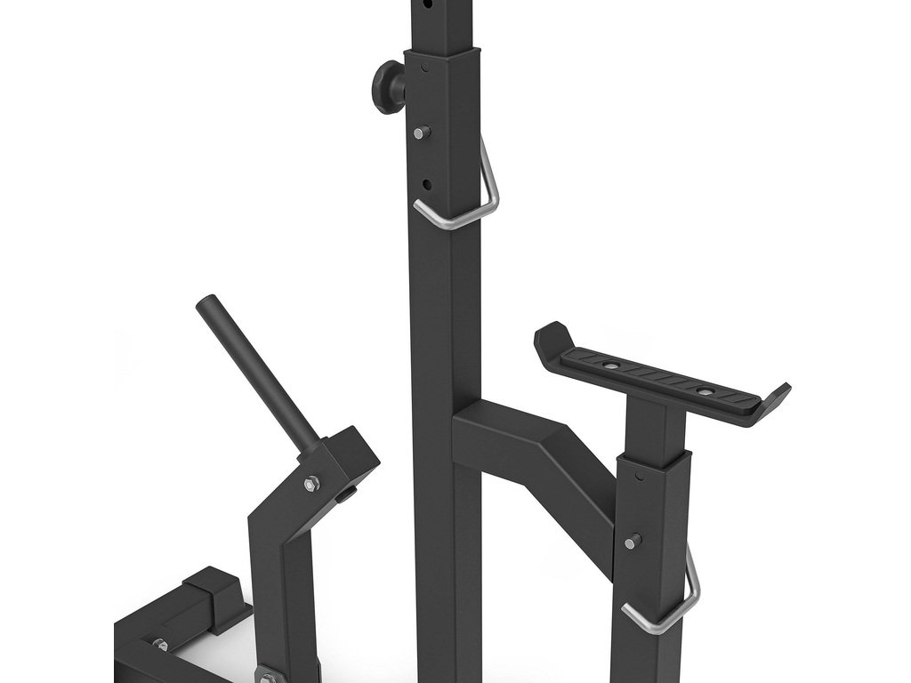 Kényelmesen módosíthatja az állványok magasságát - a magasságához és a végzett gyakorlatok típusához igazítva. A dupla zár megakadályozza a pozíciójuk megváltozását – még nagy terhelés esetén is.