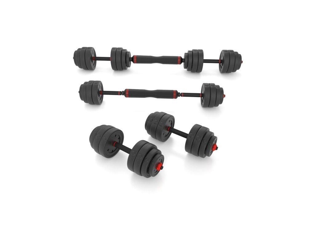 A súlyok kiváló minőségű és konzisztens kompozitból készülnek, amely tömör műanyaggal van bevonva, amely biztosítja a tartósságot és a sérülésekkel szembeni ellenállást. Minden fogantyú és markolat csúszásgátló anyagokkal van bevonva a stabil fogás érdekében. Az összekötő részt ergonomikusan kialakított habszivacs borítja a maximális kényelem érdekében edzés közben, súlyzóval a háton.