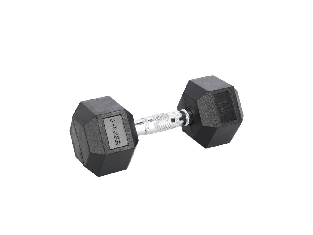A 10 kilogrammos, egykezes, hatszögletű kézisúlyzó professzionális otthoni, illetve edzőtermi használatra készült. A hatszögletű forma megakadályozza a súlyzó nem kívánt mozgását a tárolása során. A gumírozás meghosszabítja az élettartamát. A recézett, króm fogantyú biztosabb tartást tesz lehetővé.